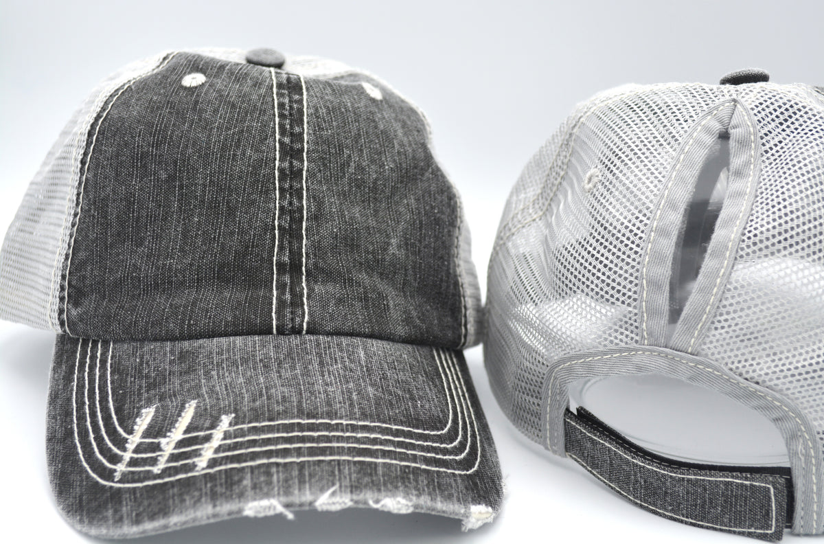 Custom Logo Women’s Trucker Hat - High Ponytail Distressed Cap