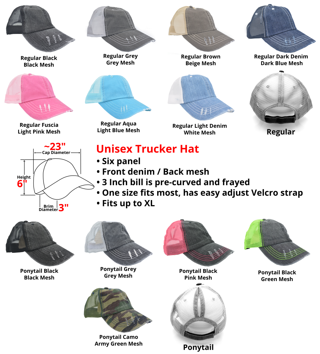 Crafted for comfort and style, this Embroidered Trucker Hat is perfect for high ponytails. Featuring a custom logo, distressed finish, and breathable mesh back, it’s ideal for women’s casual wear or outdoor adventures. Makes a thoughtful gift for personalized style.